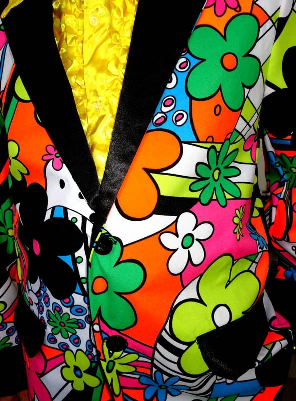 Sie möchten zum Schlagermove und suchen noch die passenden Klamotten? Mit diesem bunten Herrenanzug bleibt den Gästen die Spucke weg. Fühlen Sie sich wie ein Flowerpower Schlagerstar.