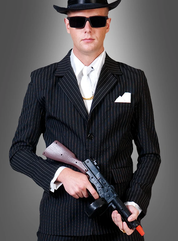 Schuhe und Hemd sind nicht im Lieferumfang enthalten. Zubehör wie Gangster Fedora Hut, weiße Krawatte, Waffe, Gamaschen für die Schuhe und Brille können Sie separat dazu bestellen. Passende Gangsterbräute haben wir ebenfalls im Angebot.