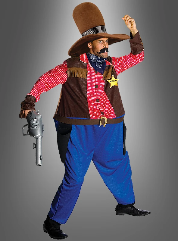 Dieser Sheriff lehrt jeden Outlaw das Fürchten, denn er ist ein echtes Schwergewicht. Auf der nächsten Wild West Party wird nicht nur Ihr Cowboy Kumpel dieses Kostüm lustig finden. Für eine Gruppe ist das Kostüm besonders gut geeignet, denn durch den riesigen Cowboyhut ist man nicht zu übersehen und es geht keiner verloren. Außerdem ist es super witzig.