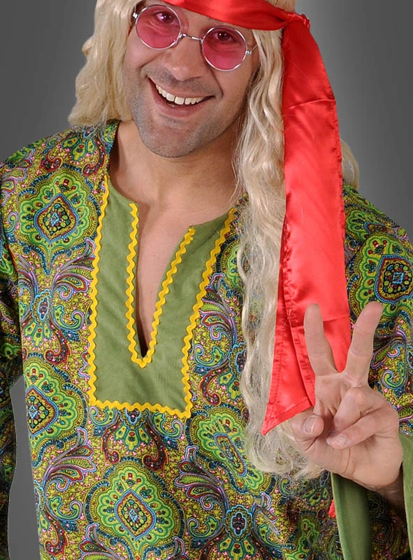 Unser grünes Hippiehemd ist eine tolle Verkleidung für alle, die an Karneval richtig abgrooven wollen. Viel Bewegungsfreiheit beim flotten Move auf der Tanzfläche bietet der lockere Schnitt im Stil einer kurzen Tunika. Das Hemd wird über den Kopf gezogen und die Verwandlung ist perfekt. Schlüpfen Sie in unser grünes Hippiehemd und werden Sie zum gechillten Blumenkind. So einfach war verkleiden selten. Jeder sieht sofort: Hier ist ein echter Hippie unterwegs. Das Herrenhemd überzeugt mit vielen stilechten Details.