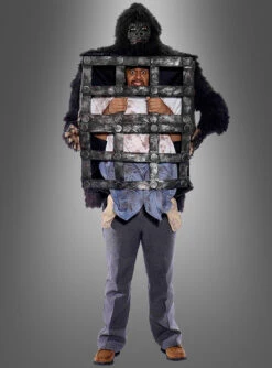 Tolles Deluxe Kostüm mit Einstieg von der Rückseite. Kopf und Hände des Gorillas sind aus Latex und am Käfig befestigt. Die Füße des Gefangenen hängen aus dem Käfig heraus. Kostüm besteht aus einem Teil, es gibt also keine Einzelteile, die man verlieren könnte.