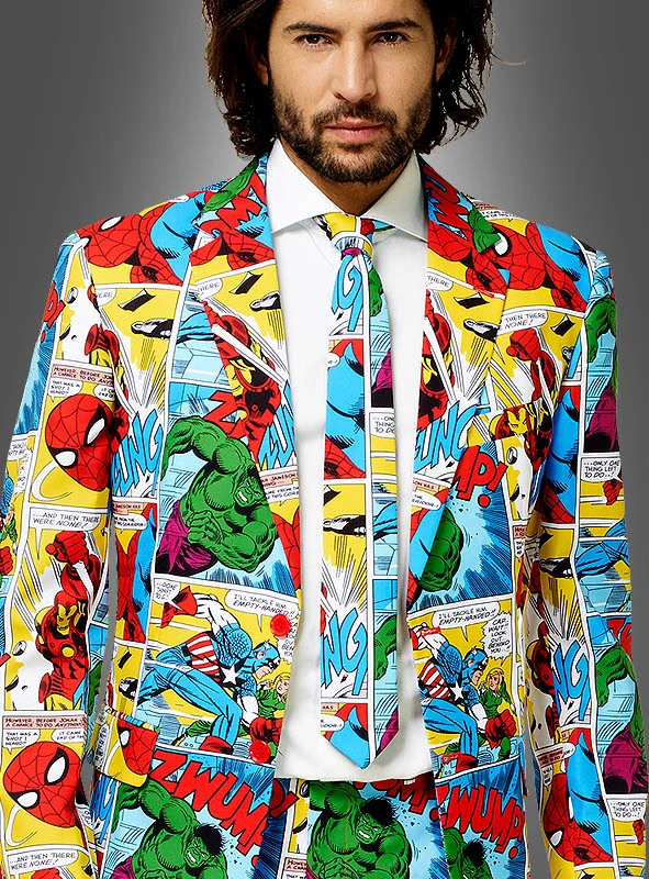 Mit dem Marvel Herrenanzug zeigen Sie deutlich, dass Sie Fan der beliebten Superhelden aus dem Haus der Ideen sind. Perfekt für Comic Conventions, aber durchaus auch im Alltag tragbar. Original Marvel Lizenzartikel.