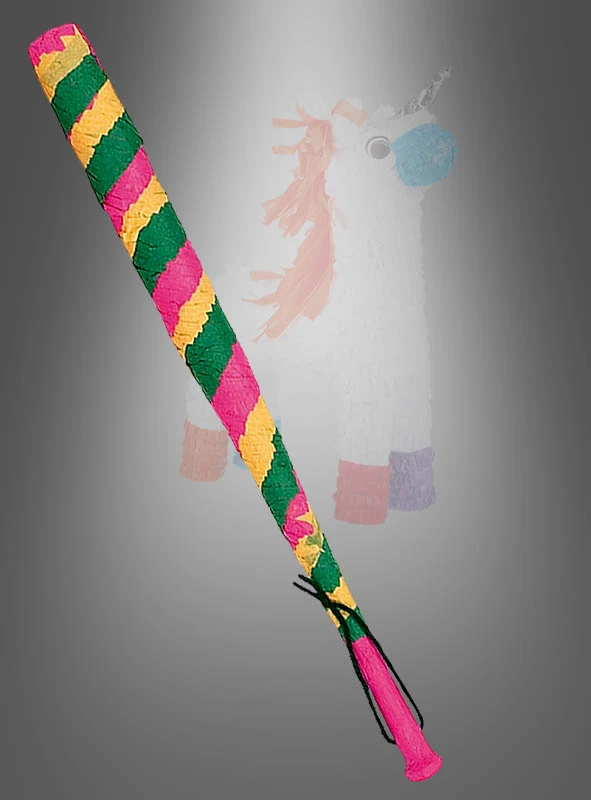 Der Pinata Schlagstock ist aus stabilem, massiven Holz gefertigt und ca. 45 cm lang. Im Stil der Pinatas ist er mit buntem Papier umwickelt.