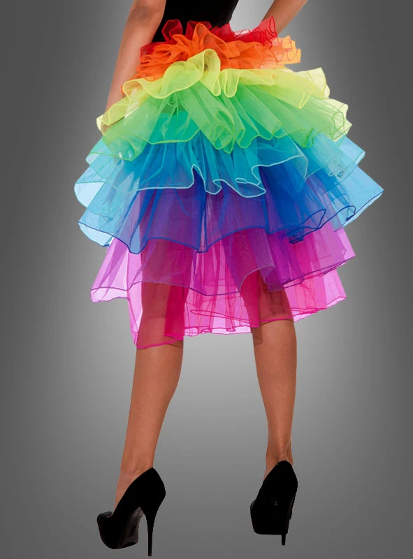 Ein bezaubernder Hingucker in allen Farben des Regenbogens ist diese bunte Tüllrock Tournüre, die vielseitig einsetzbar ist. Falls Sie Ihre Kostüme selbst gestalten möchten und immer wieder in einer anderen Verkleidung erscheinen wollen, gehört der bunte Petticoat fast schon zu den Basics.