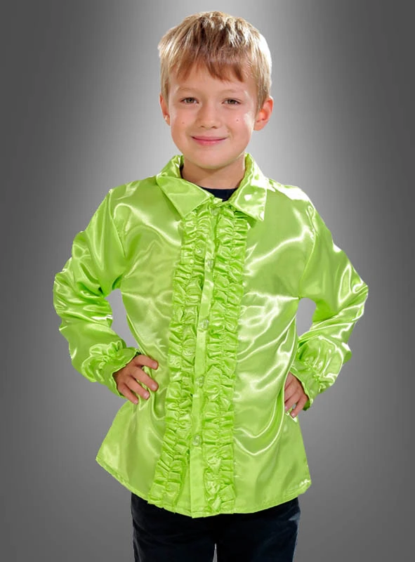 Auch für kleine Schlager- und Discofans gibt es jetzt das 70er Jahre Rüschenshirt Kinder in knalligen Farben. Entweder einfach so anziehen oder zusammen mit unserem Neon Psychodelic Disco Anzug für coole Kids.
