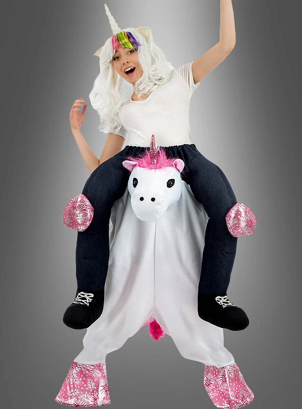 Das Einhorn trägt gerne Männer und Frauen Huckepack. In diesem Trag mich Kostüm sind Sie der absolute Star. Denn wer hätte nicht gerne sein eigenes Einhorn, auf dem er zur Party reiten kann? Witziges Spaßkostüm für den Junggesellenabschied oder zum Karneval. Und in der Gruppe als Herde macht die Party noch mehr Spaß. Beweisen Sie der Welt zusammen mit Freunden, dass Sie nicht vom letzten Einhorn getragen werden. Es gibt noch unendlich viele davon.