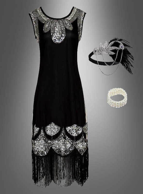Egal ob Sie Silvester feiern, eine Babylon Berlin Mottoparty oder zu einer Downton Abbey Tea Time geladen sind. Dieses edle Paillettenkleid in vornehmem Schwarz passt immer.