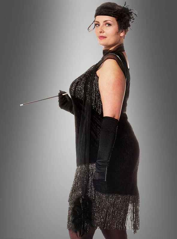 Für eine wunderbare Diva ist dieses Übergröße 20er Jahre Fransenkleid ein echtes Highlight. Elegant und doch auch extravagant werden Sie in diesem Samtkleid glänzen! Silvester, Mottoparty oder Karneval sind in diesem Kostüm ein echter Traum.
